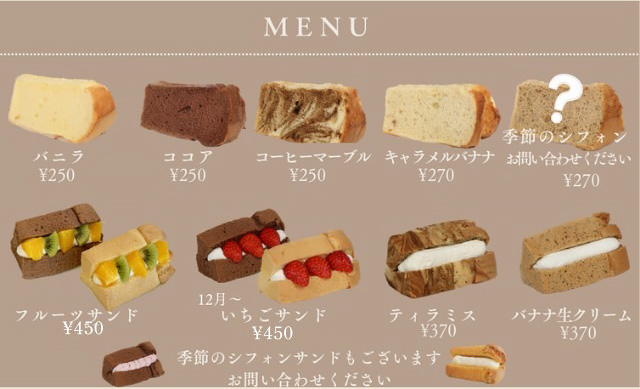 手作りのシフォンケーキは常時5種類ご用意しております。